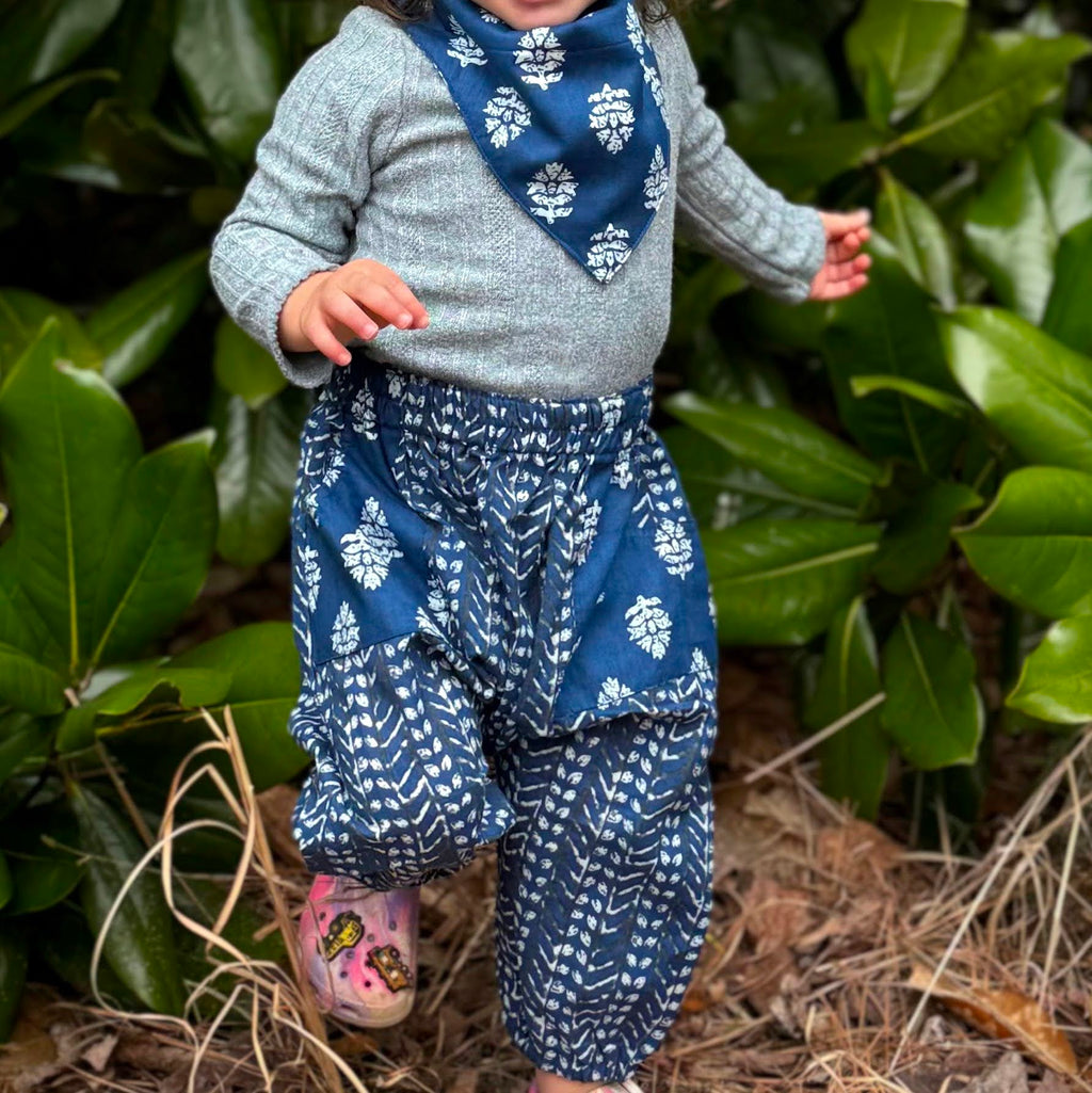 Indigo Fishbone Reversible Baby Bib